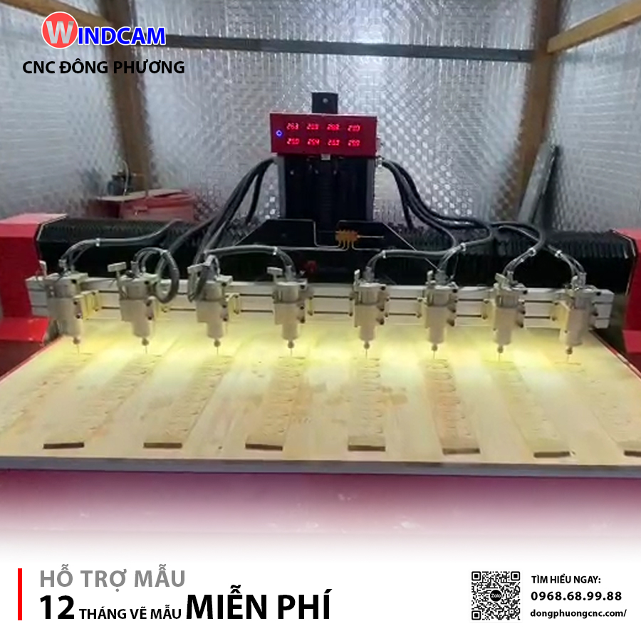 Với hơn 10 năm kinh nghiệm nghiên cứu và sản xuất máy CNC gỗ vi tính, CNC Đông Phương tự hào là thương hiệu Việt Nam tiên phong cung cấp các dòng máy CNC 8 đầu chuyên dụng cho đục khắc hoa văn trần gỗ, phù điêu, tượng gỗ và nội thất cao cấp. Dòng máy 8 đầu đang là sản phẩm bán chạy nhất nhờ khả năng xử lý đồng thời 8 sản phẩm, rút ngắn thời gian thi công xuống còn 1/10 so với thủ công.