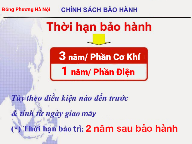 Khách hàng cũng sẽ được đào tạo chạy máy miễn phí, không giới hạn số lượng người học và thời gian học. Đặc biệt trong thời gian bảo hành mọi linh kiện bị hỏng hay lỗi đều sẽ được thay mới hoàn toàn miễn phí. Như vậy có thể nói đối với Đông Phương Hà Nội thì khách hàng luôn là thượng đế.