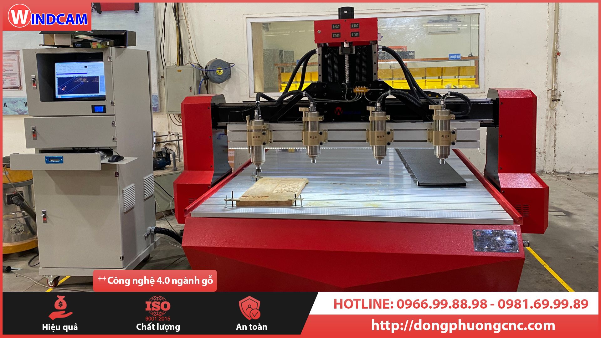 Máy CNC 1325 -4 đầu đây là mẫu máy có kích thước và trọng lượng vừa phải phù hợp với số đông khách hàng, nhanh thu hồi vốn nhất trong phân khúc máy CNC 3D. Theo số liệu thống kê tại CNC Đông Phương, dòng máy này đã giữ vững ngôi vương trong suốt nhiều năm liền.