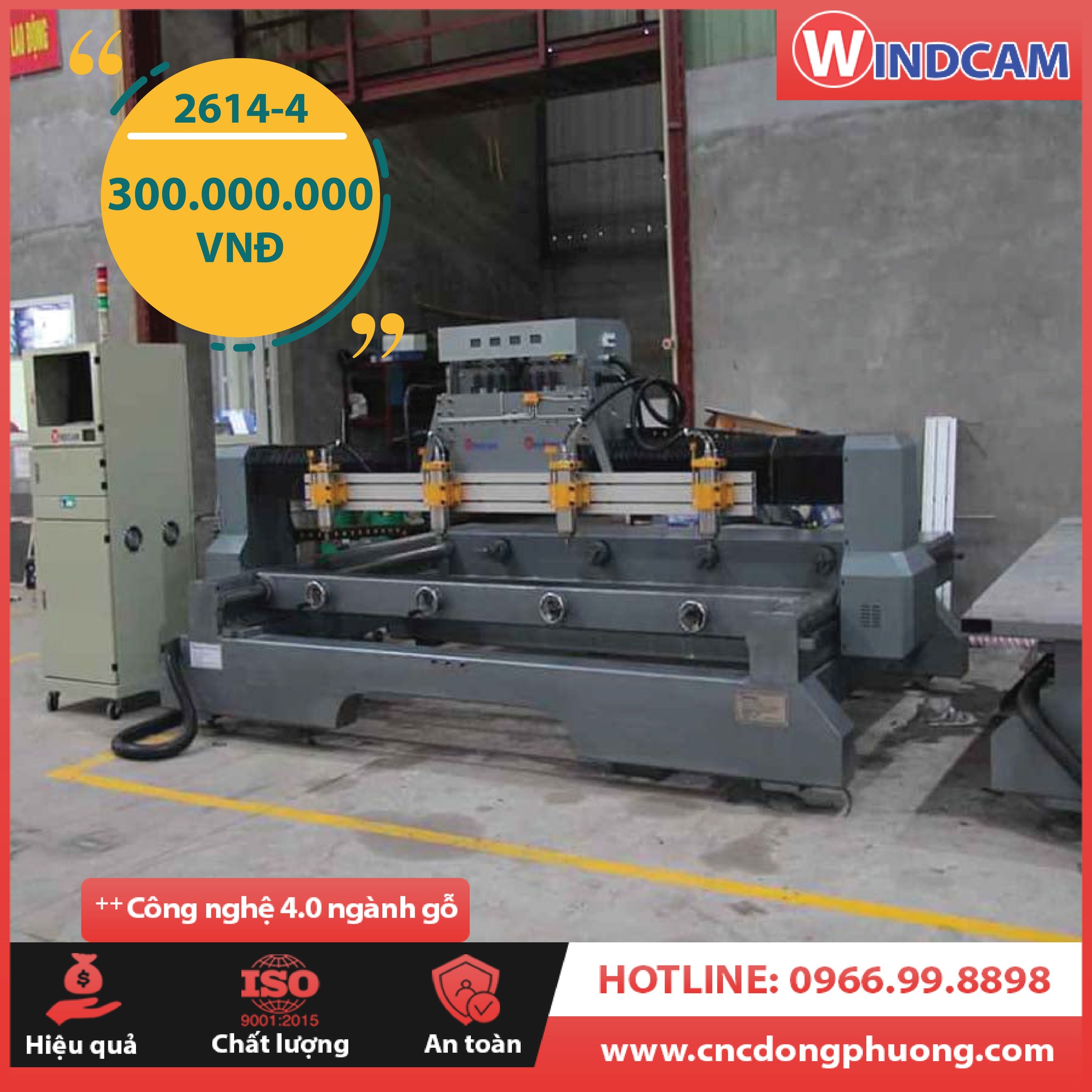 Giá máy CNC Windcam 2614-4: 300.000.000 triệu đồng. Đây là giá bán tại nhà máy sản xuất Hưng Yên, chưa bao gồm phí vận chuyển và thuế VAT 10%