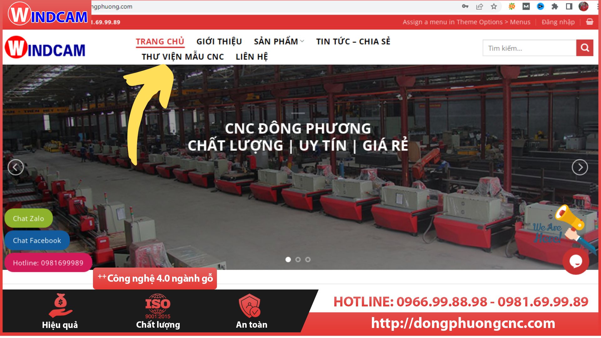Bước 2: Sau khi ra trang web cncdongphuong.com cần tìm, bạn chọn mục: "THƯ VIỆN MẪU CNC" để tìm kiếm mẫu.
