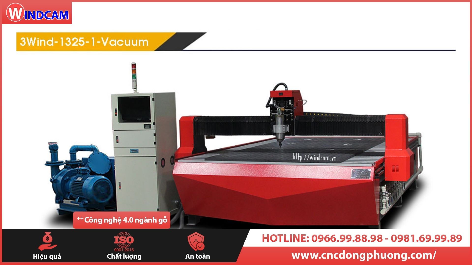 Máy cnc 1325-1 bàn hút chân không thuộc dòng máy cắt quảng cáo cnc 3wind 1325-1 với cấu hình được lắp thêm hệ thống bàn hút chân không hiện đại. chuyên gia công trên các vật liệu có tính chất mềm, trơn, mỏng và khó có thể dùng vam kẹp để giữ cố định phôi như một số vật liệu: Nhựa PVC, nhôm, kính, MDF, Alu, Fomex, nhựa Silicon,...