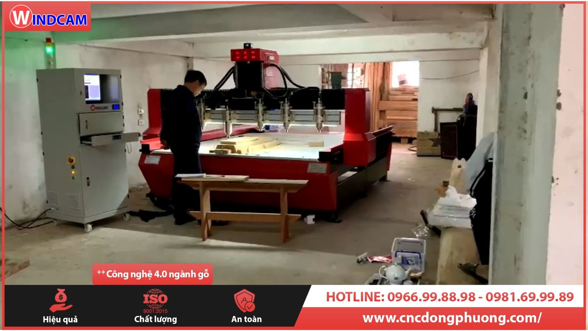 Máy CNC Đông Phương hiện nay đang được trải dài khắp 63 tỉnh thành. Số lượng khách hàng sử dụng máy rất nhiều. Điều này càng khẳng định chất lượng và thương hiệu Windcam của công ty ngày càng phát triển. Gần đây, anh Sang - Quảng Bình vừa đầu tư cỗ máy CNC đục gỗ 1325-4 về để gia công sản xuất đồ gỗ mỹ nghệ. Nhân viên kỹ thuật của công ty sẽ chuyển giao và lắp đặt tại nhà anh Sang.