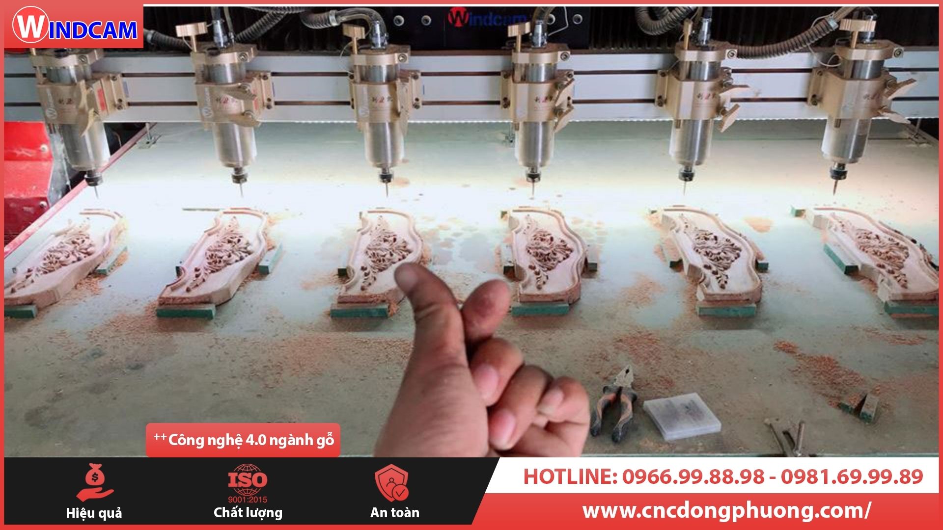 Máy đục gỗ này là dòng máy được thiết kế 8 đầu đục mang thương hiệu Windcam, tạo ra đồng thời 8 sản phẩm cùng lúc giống nhau, đem lại năng suất cao trong công việc. 8 đầu đục chạy cùng lúc sẽ xử lý được nhiều đơn hàng lớn, tiết kiệm được nhân công trong quá trình sản xuất.