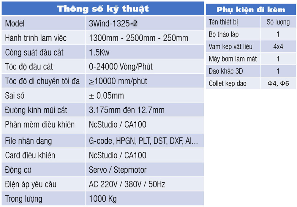 Hiện nay máy CNC 1325-2 này có mức giá 139 triệu đồng. Giá này chưa bao gồm chi phí vận chuyển và thuế VAT.