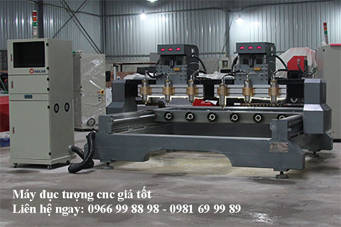 Máy đang trang bị 4 đầu đục với công suất 1.5Kw có thể đục sâu tối đa 4cm. Ngoài ra có thể nâng cấp lên công suất 2.2kw để đục sâu tới 7cm.