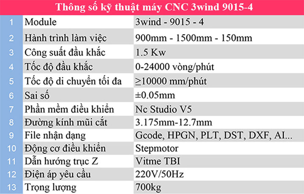 Máy khắc gỗ mini có dòng 4 đầu, 2 đầu, hoặc 1 đầu. Động cơ Spindle Windcam được thiết kế riêng theo tiêu chuẩn kỹ thuật cao, sử dụng vòng bi siêu tốc P4 UTE đem lại sự bền bỉ tuyệt vời. Công suất củ đục 1.5Kw có thể đục sâu tới 4cm.