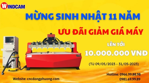 Với bất kỳ khách hàng đầu tư máy CNC trong tháng 05/2023 đều được nhận ưu đãi giảm giá trực tiếp vào máy CNC khách hàng đầu tư. Số tiền lên tới 10.000.000 VNĐ.