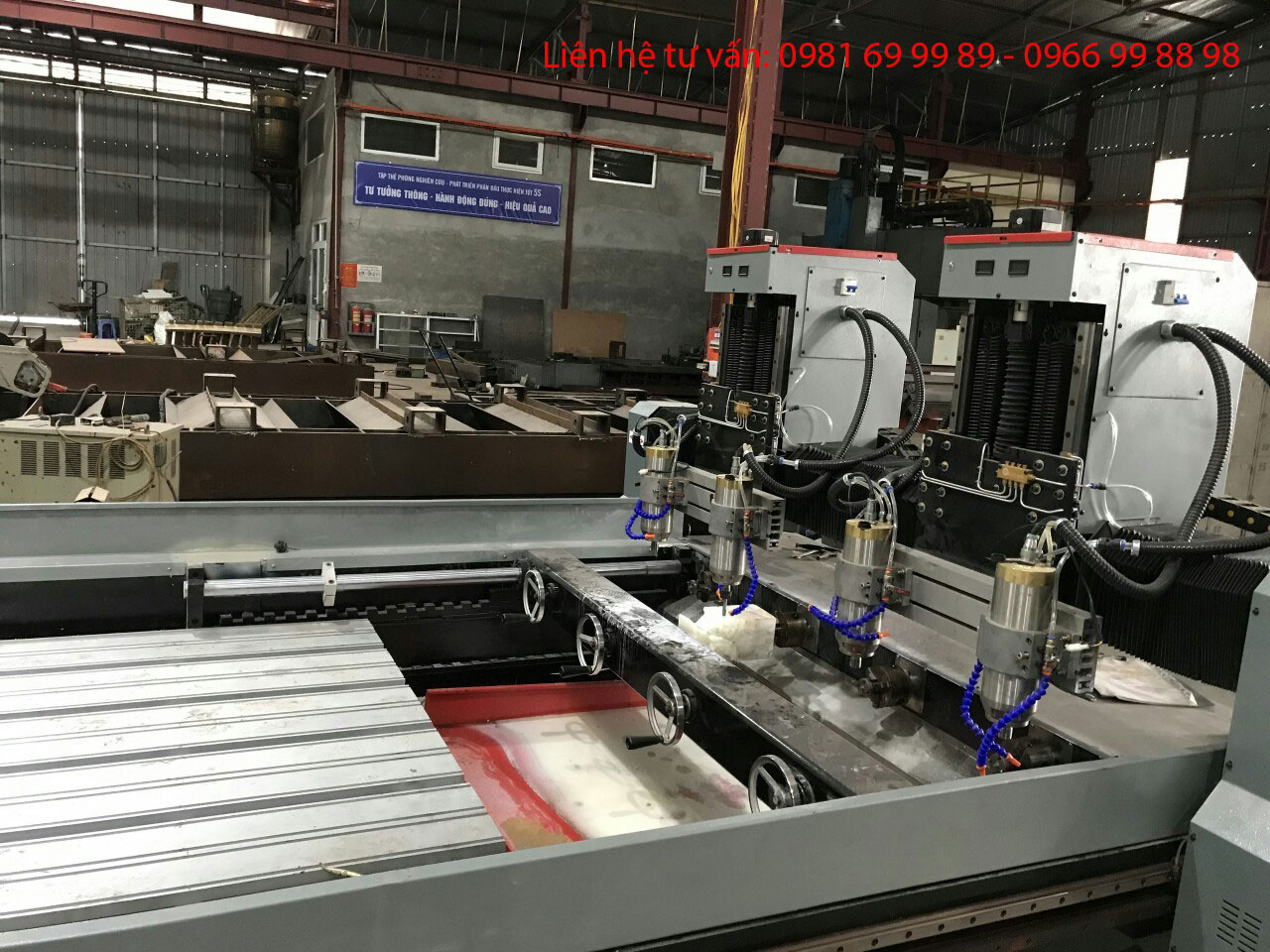 Củ đục Spindle công suất lớn 5.5kw giúp máy có thể đục được nhiều loại đá cứng. Đầu mũi đục được thiết kế hai vòi bơm nước tự động giúp làm sạch vụn đá nhỏ, vụn đá phun nước chảy xuống hệ thống máng nước của máy. Tránh được những lỗi do vụn đá vướng vào mũi khắc, chèn lên đường khắc.