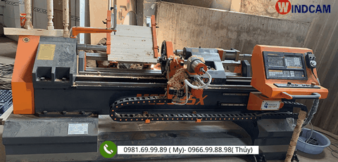Máy sử dụng bộ điều khiển 980TC2 tích hợp phần mềm chạy máy bản quyền giúp quá trình gia công nhanh gọn hơn so với các máy tiện khác.