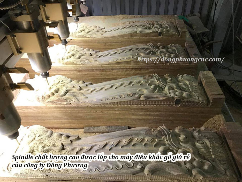 - Máy sử dụng Spindle 1,5kw có thể đục sâu 4cm, hoặc nâng cấp công suất 2,2kw đục sâu 7cm xuống gỗ. Spindle của công ty Đông Phương sử dụng thương hiệu GDZ được thiết kế theo tiêu chuẩn riêng, chống hao mòn vòng bi và chịu được nhiệt độ cao