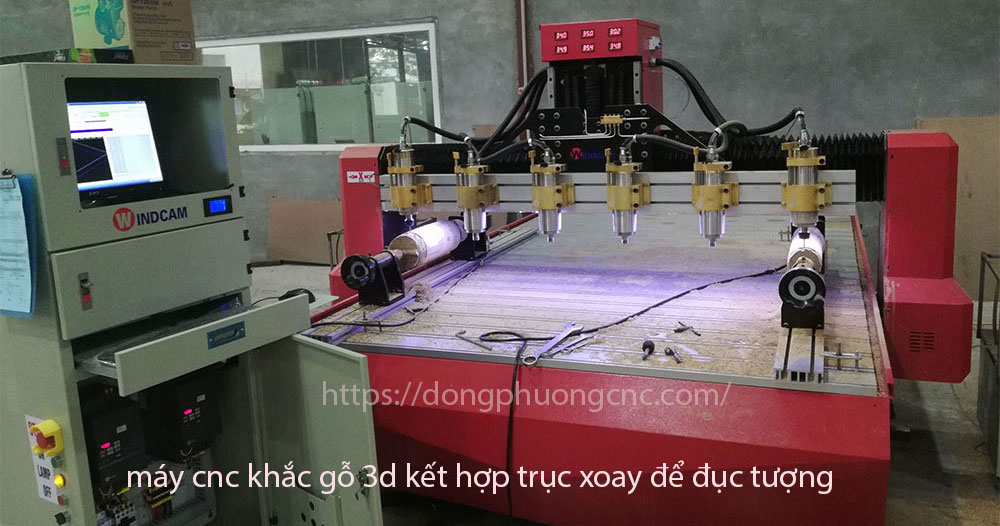 1. Máy cnc khắc gỗ kết hợp thêm trục xoay A để đục tượng