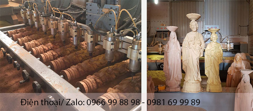 Máy điêu khắc tượng gỗ là dòng máy chuyên làm những sản phẩm tròn xoay như tượng, chân bàn ghế tân cổ điển, trụ rồng, lục bình...