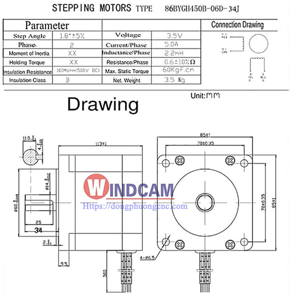 Step motor 86BYGH450A-06: 850.000 (dài 76mm)