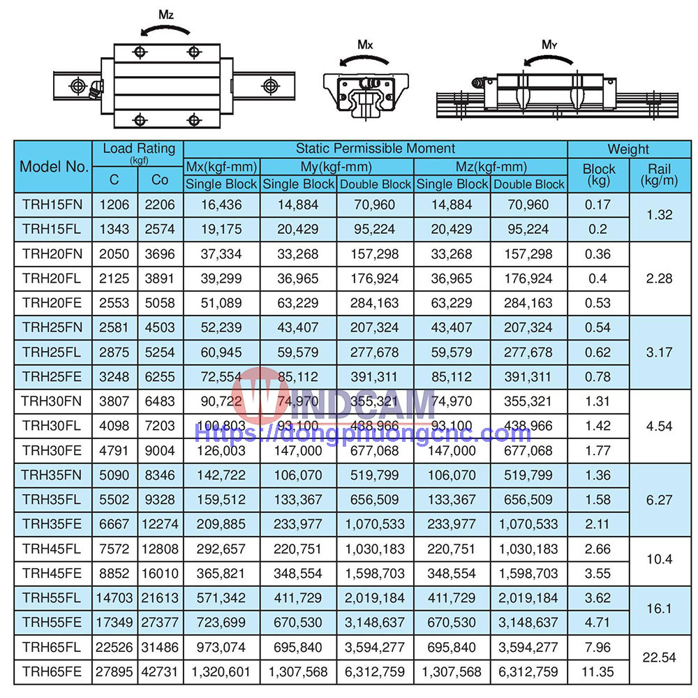 Thông số kỹ thuật con trượt vuông TBI FL/FN:
