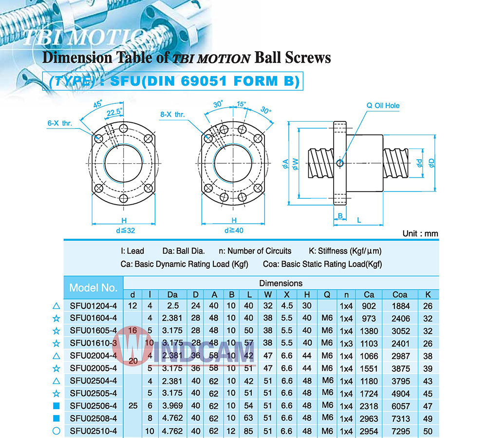 Bảng giá đai ốc bước ren 5 (Ball screw TB):