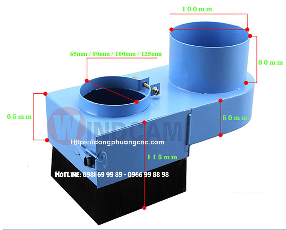 Đầu chụp hút bụi hay còn gọi là cổ hút bụi sử dụng rộng rãi trên máy khắc cnc ngành quảng cáo, nội thất..