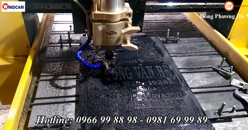 Máy cnc chuyên làm bia mộ có kích thước mặt bàn làm việc 90 x 1m5, khi điêu khắc một tấm đá sẽ được kích thước lớn nhất 65cm về chiều ngang