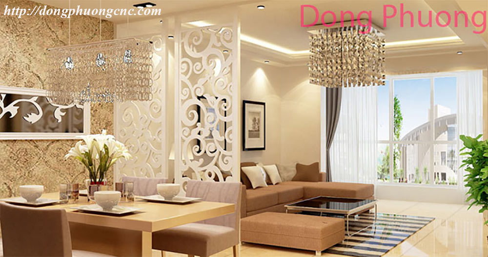 Cắt vách ngăng trang trí: khi sở hữu máy cnc quảng cáo bạn có thể dễ dàng trong việc tạo ra sản phẩm vách ngăn đẹp bằng cách thiết kế khuôn mẫu có sẵn và nạp chương trình vào máy, từ đó máy sẽ hoàn toàn tự điều khiển bằng máy tính mà không cần đến sự trợ giúp, can thiệp của con người