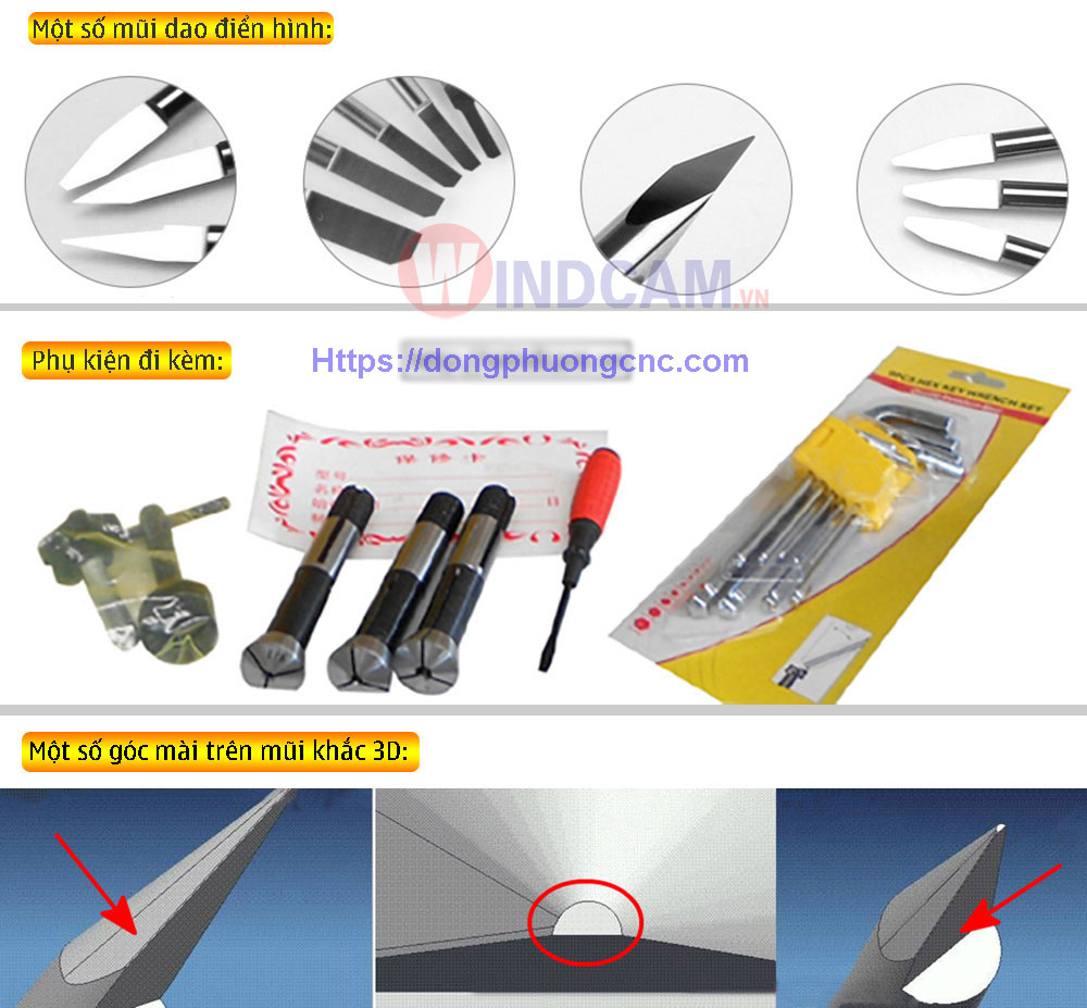 Phụ kiện máy mài dao khắc máy cnc U2 đi kèm: