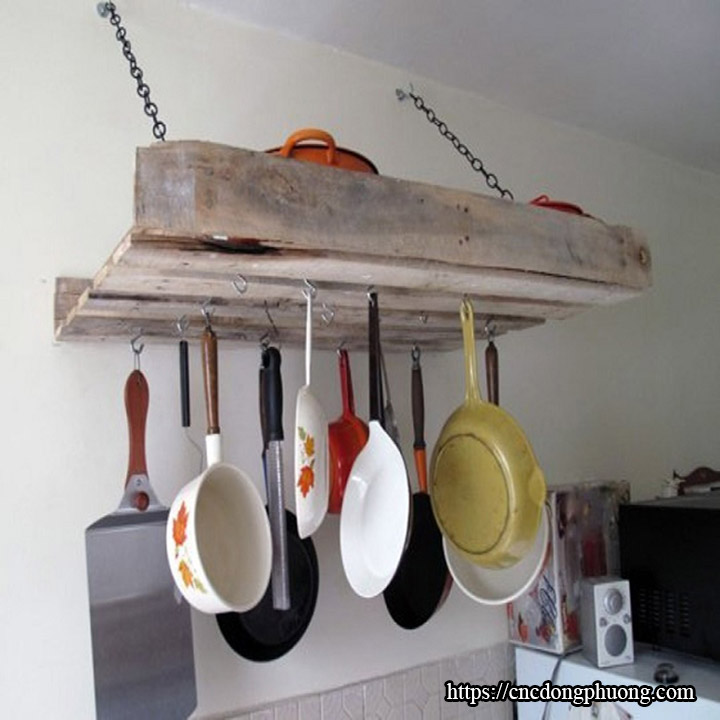 10. Gian bếp nhà bạn sẽ không còn lộn xộn bởi đống xoong chảo nữa nhờ được treo gọn gàng trên chiếc giá gỗ này.
