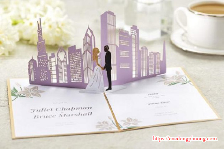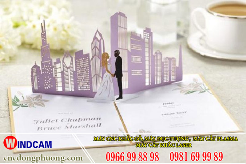 Các cặp đôi muốn thể hiện cá tính trong ngày trọng đại của cuộc đời mình không thể nào bỏ qua những thiệp cưới 3d. Thiệp cưới được coi như một lời mời đến người thân, gia đình để thông báo rằng tại thời gian này chúng tôi chính thức nên duyên vợ chồng. Rất nhiều cặp đôi hiện nay lựa chọn lời thông báo đó bằng thiệp cưới 3d được tạo ra từ những chiếc máy cắt laser giá rẻ.