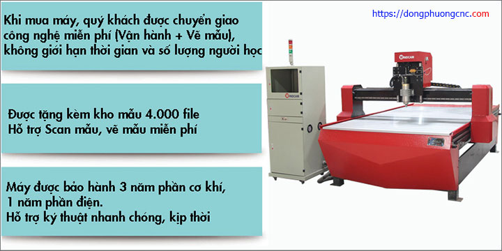 Bên cạnh đó bạn sẽ được hỗ trợ tốt giải đáp các thắc mắc và tư vấn tốt nhất. Được miễn phí đào tạo sử dụng công nghệ máy cho đến khi thành thạo. Được chuyển giao công nghệ máy ngay tại nhà có kỹ thuật đi kèm máy để khắc phục xử lí các vấn đề phát sinh. Ngoài ra bạn sẽ được tặng trọn bộ kho mẫu dung lượng lớn của Đông Phương và được hỗ trợ mẫu mã bất cứ khi nào cần. Đặc biệt cơ chế bảo hành sửa chữa thay thế 1 đổi 1 sẽ khiến bạn hài lòng. Thời hạn bảo hành kéo dài lên đến 3 năm kể từ ngày giao máy.