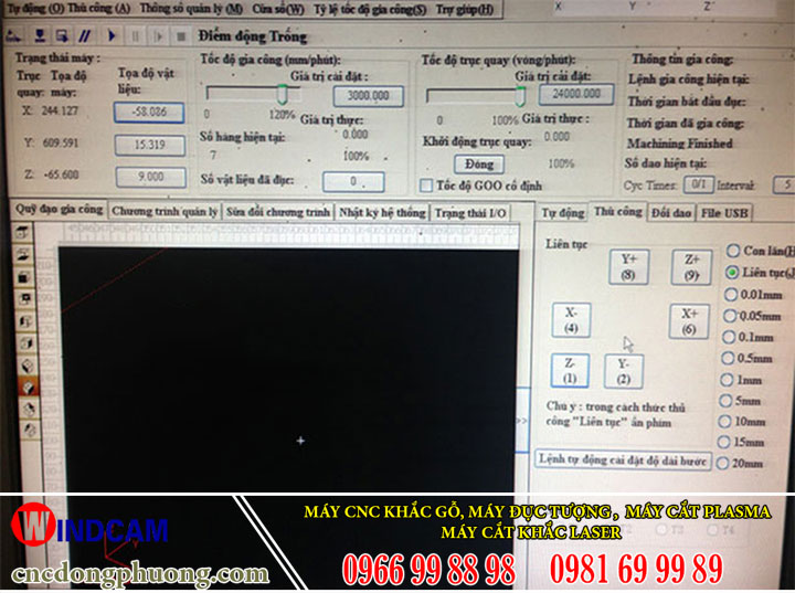 Sử dụng phần mềm điều khiển NcStudio có giao diện bằng tiếng Việt giúp cho người dùng dễ dàng sử dụng. Công suất củ đục của máy 5.5kW mang đến khả năng đục tối ưu mạnh mẽ. Máy hỗ trợ định dạng các file G-code, HPGN, PLT, DST, AI, DXF, ... Dòng điện của máy là 220V/ 380V/ 50Hz.