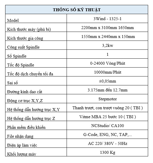 Thông số kỹ thuật của dòng máy CNC 1325-1