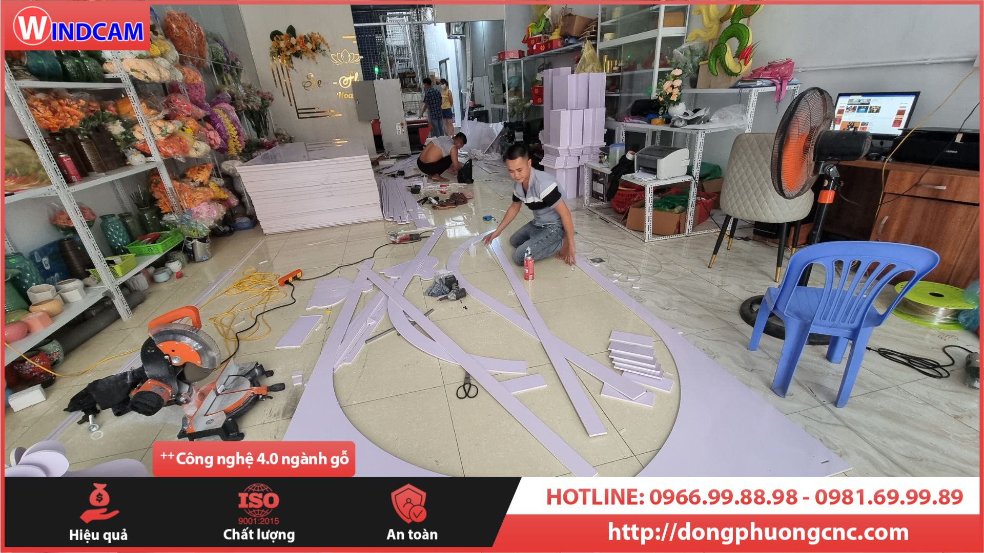 Là 1 đơn vị chuyên gia công cắt cổng cưới. Chị Nhung - Phú Thọ trước đây đều sử dụng thủ công để gia công sản phẩm. Sau quá trình tìm hiểu, xưởng gia công chị Nhung quyết định tìm đến công ty Đông Phương để đầu tư cỗ máy CNC 1325-1. Sản phẩm xưởng chị gia công chủ yếu là cắt Fomex, vật liệu trang trí cổng cưới phổ biến hiện nay. Với máy CNC 1325-1 của công ty Đông Phương thì đáp ứng tốt nhu cầu cắt Fomex, chuyên làm cổng cưới.