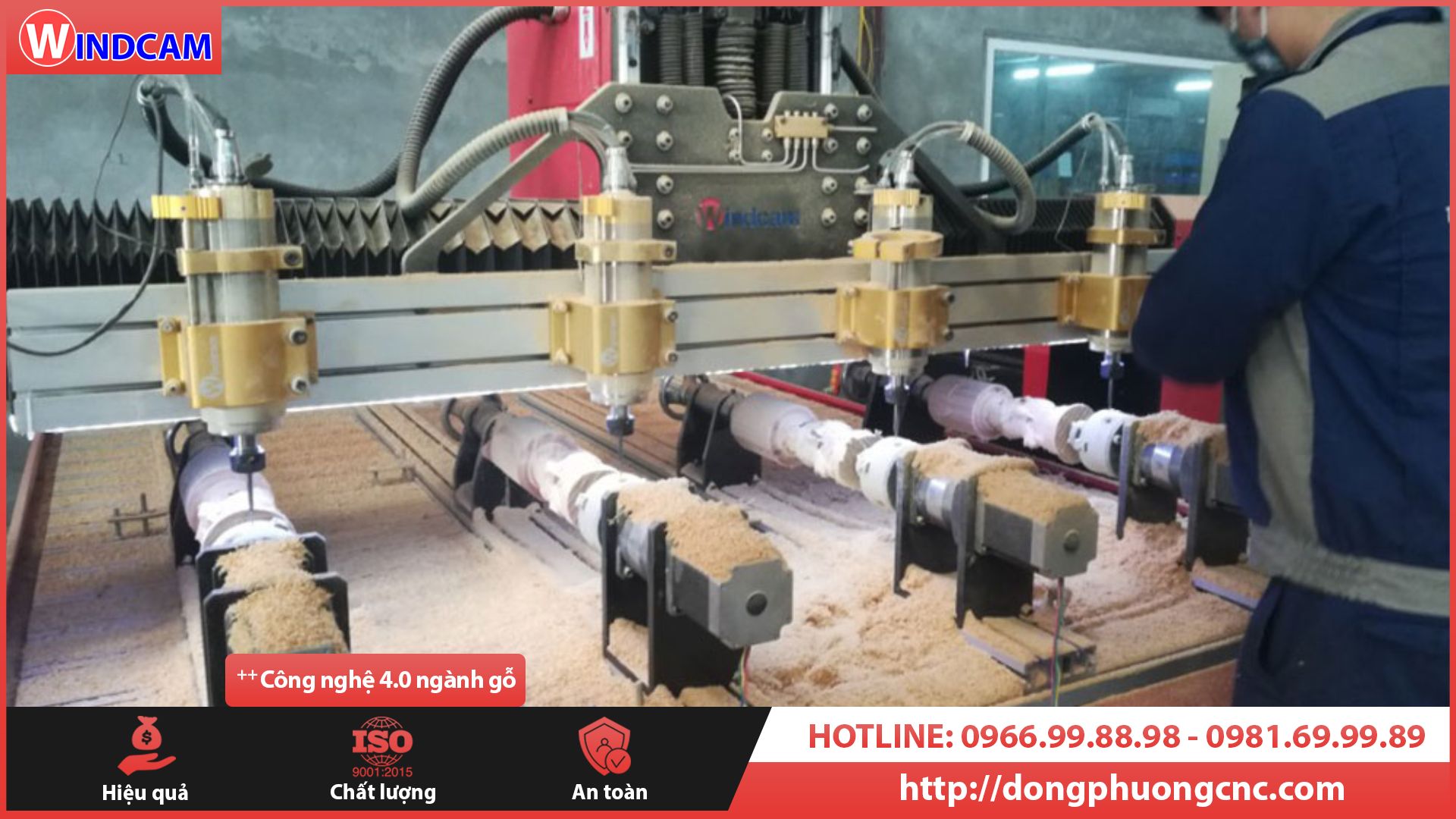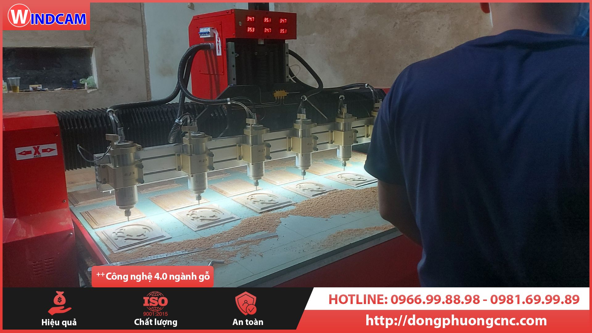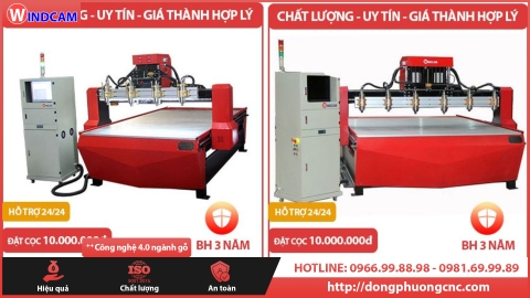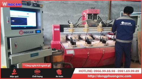 Cỗ máy CNC đục gỗ bán chạy nhất tại CNC Đông Phương Hà Nội. Với thiết kế hành trình gia công chiều rộng 1550mm chiều dài 2440mm. Vai máy cao 250mm phù hợp với sản phẩm gỗ phôi cao 200mm. Kết hợp 4 củ đục Spindle cho ra 4 sản phẩm cùng lúc giống nhau. Mỗi củ đục Spindle có công suất 1.5kw er16 của hãng GDZ tất cả đều được in logo thương hiệu Windcam.