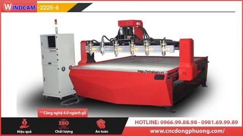 Về chức năng và linh kiện giống như máy CNC 1325-4 đều được nhập khẩu chính hãng và in thương hiệu windcam. Điểm khác lớn nhất giữa hai cấu hình này là máy CNC 2225-6 có hành trình gia công lớn hơn với chiều dài 2150mm chiều rộng 2440mm. Với hành trình này xưởng mộc có thể dễ dàng gia công những sản phẩm có kích thước lớn.